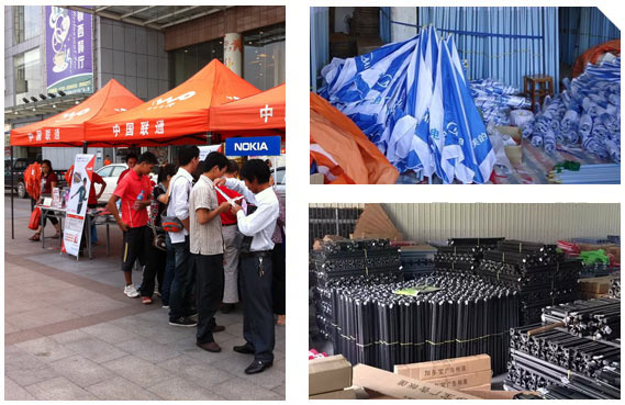 廣告帳篷的骨架顏色分為乳白色、黑色、藍(lán)色、紅色、銀灰色等多種顏色。